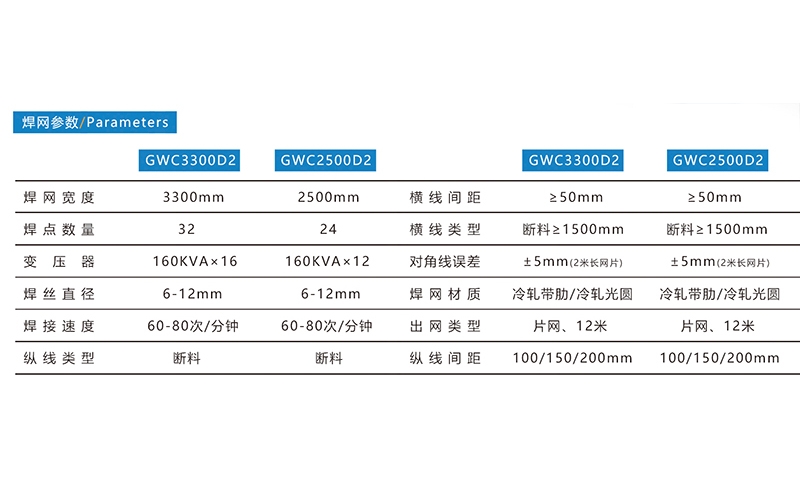 鋼筋網(wǎng)焊接生產(chǎn)線,焊接網(wǎng)寬度3300mm和2500mm兩種,焊接絲徑6-12mm,焊接速度為60-80次/分鐘,縱橫線均為斷料。標(biāo)準(zhǔn)配置:簸箕式輸網(wǎng)與落網(wǎng)、縱線放料架、送徑小車、焊接主機(jī)、增料料斗、伺服拉網(wǎng)、冷水機(jī)??蛇x配置:快速拉網(wǎng)+升降式落網(wǎng)與出網(wǎng)、自動翻網(wǎng)、空壓機(jī)。河北驕陽焊工有限公司,0318-7063097